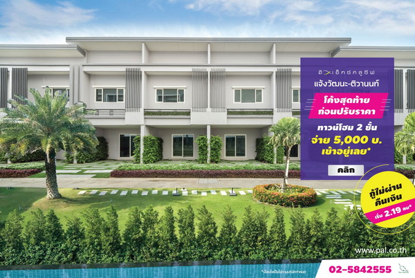 ดิ เอ็กซ์คลูซีฟ แจ้งวัฒนะ-ติวานนท์ ทาวน์โฮม2ชั้น คุณภาพงานก่อสร้างแข็งแกร่งด้วยอิฐมอญแดงทั้งหลัง พร้อมส่วนกลางขนาดใหญ่บนทำเลคุณภาพแจ้งวัฒนะ ใกล้รถไฟฟ้าสายสีชมพูรายละเอียดเพิ่มเติม 02-5842555