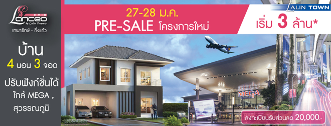 29 ม.ค. 61 3,63327-28 ม.ค. นี้ Pre-Sale โครงการใหม่ ลลิล ทาวน์ แลนซีโอ คริป เทพารักษ์-ตำหรุ เริ่ม 3 ล้าน*