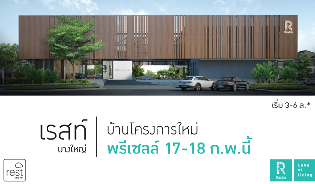 "เรสท์ บางใหญ่" บ้านโครงการใหม่จาก รสิกา พร็อพเพอร์ตี้ Presale 17 - 18 กพ. นี้ เริ่ม 3 - 6 ล้านบาท