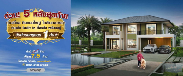 โกลเด้น วิลเลจ บางนา-กิ่งแก้ว (บ้านเดี่ยว) ด่วน!! 5 หลังสุดท้าย จองเลย! รับส่วนลดสูงสุด 1 ล้าน* กับบ้านเดี่ยว ติดถนนใหญ่ ใกล้เมกะบางนา 4 ห้องนอน ตกแต่ง Built in ทั้งหลัง หิ้วกระเป๋าเข้าอยู่เลย! พิเศษ... 7.5 ล้าน* เท่านั้น! มาก่อนมีสิทธิ์ก่อน