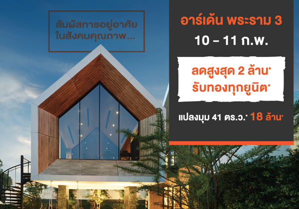 โปรโมชั่น: อาร์เด้น พระราม 3 ลดสูงสุด 2 ล้านบาท* รับทองทุกยูนิต แปลงมุม 41 ตร.ว. เริ่ม 18 ล้านบาท* 10 - 11 กุมภาพันธ์ 2561 นี้