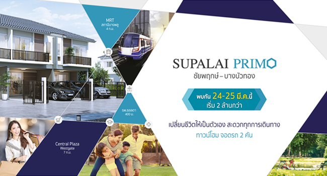5 มี.ค. 61 6,056"ศุภาลัย พรีโม่ ชัยพฤกษ์ - บางบัวทอง" ทาวน์โฮม 2 จอด เริ่ม 2 ล้านกว่าบาท พบกัน 24-25 มี.ค. นี้
