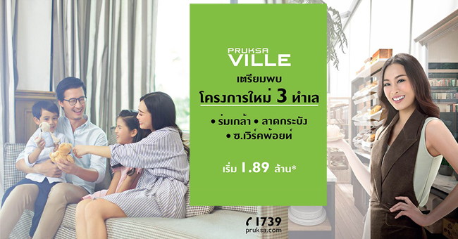 เตรียมพบกับโครงการใหม่จาก บริษัท พฤกษา เรียลเอสเตท จำกัด (มหาชน) พฤกษาวิลล์ (Pruksa Ville) ทาวน์โฮม 3 ทำเล 3 สไตล์ ได้แก่ พฤกษาวิลล์ ร่มเกล้า (Pruksa Ville Romklao), พฤกษาวิลล์ ลาดกระบัง (Pruksa Ville Ladkrabang), และ พฤกษาวิลล์ ซ.เวิร์คพ้อยท์ (Pruksa Ville Soi Workpoint) โอเวอร์ไซส์ทาวน์โฮม ของคนคิดการใหญ่ เปิดให้ลงทะเบียนรับสิทธิพิเศษก่อนใครราคาเริ่มต้นที่ 1.89 ล้านบาท* เงื่อนไขเป็นไปตามบริษัทกำหนดสอบถามข้อมูลเพิ่มเติมได้ที่ โทร. 1739 หรือ www.pruksa.comข่าว-โปรโมชั่นล่าสุดอื่นๆ
