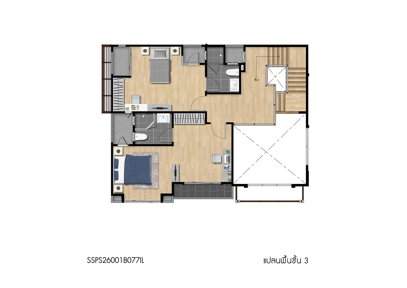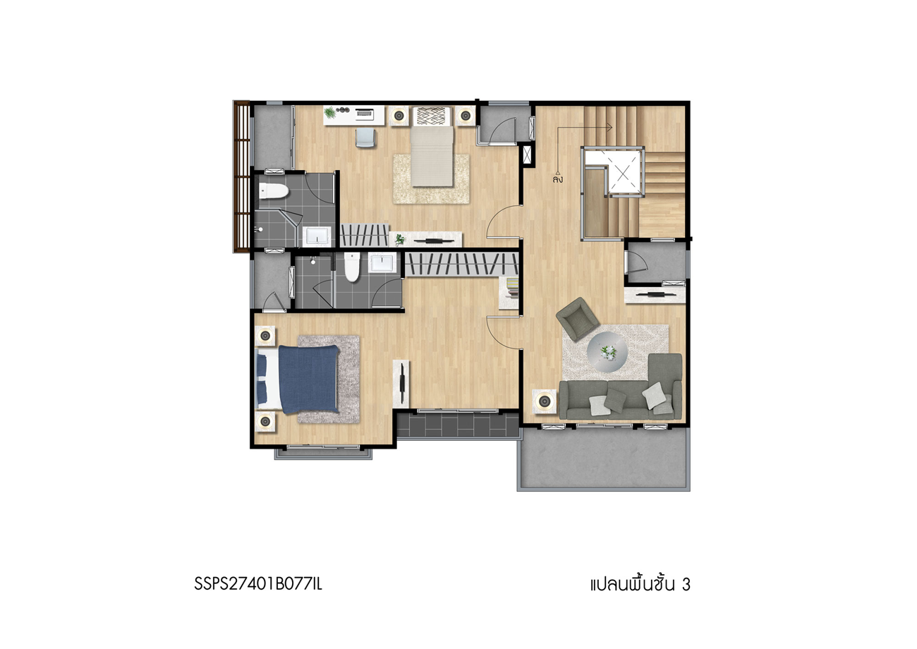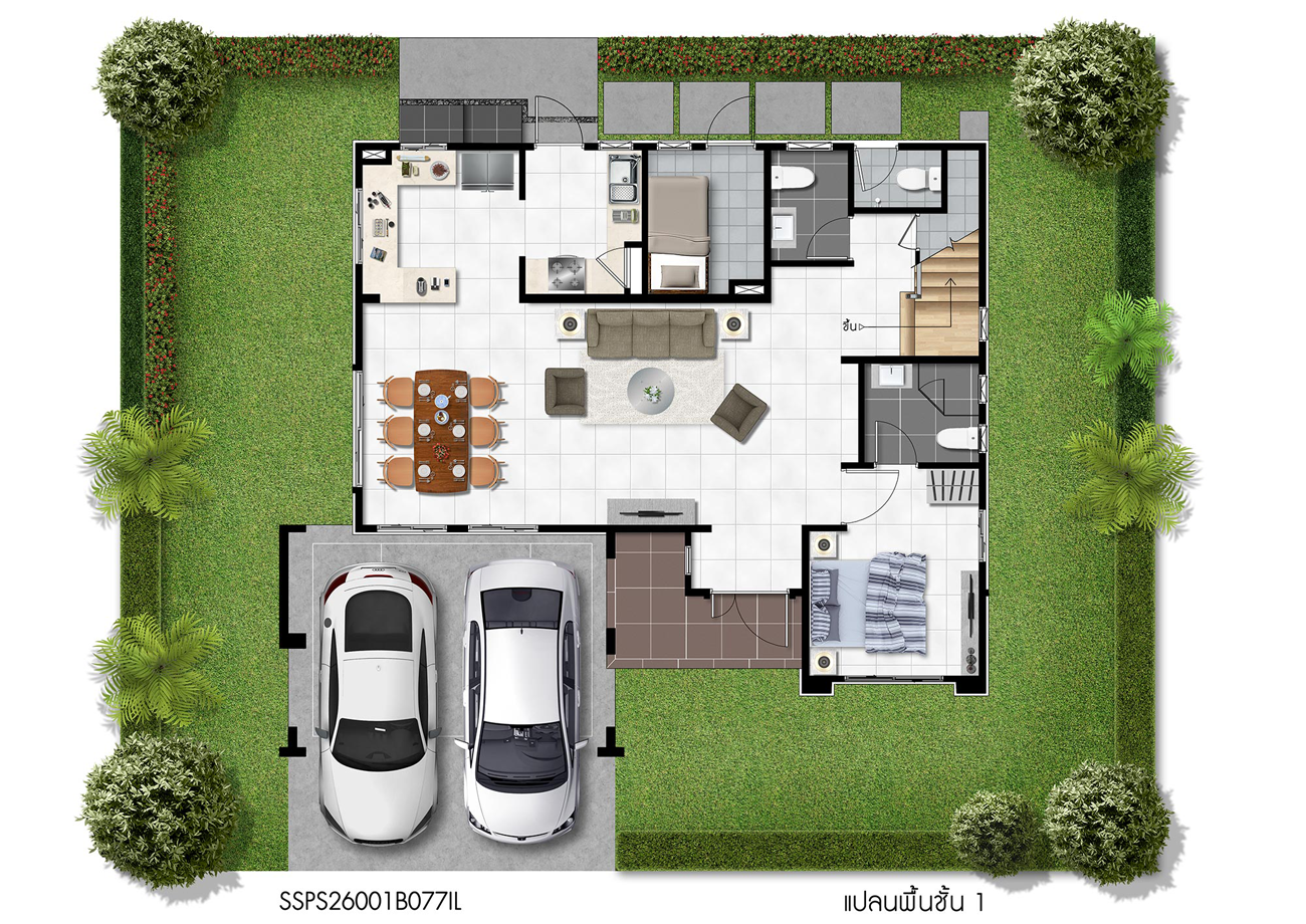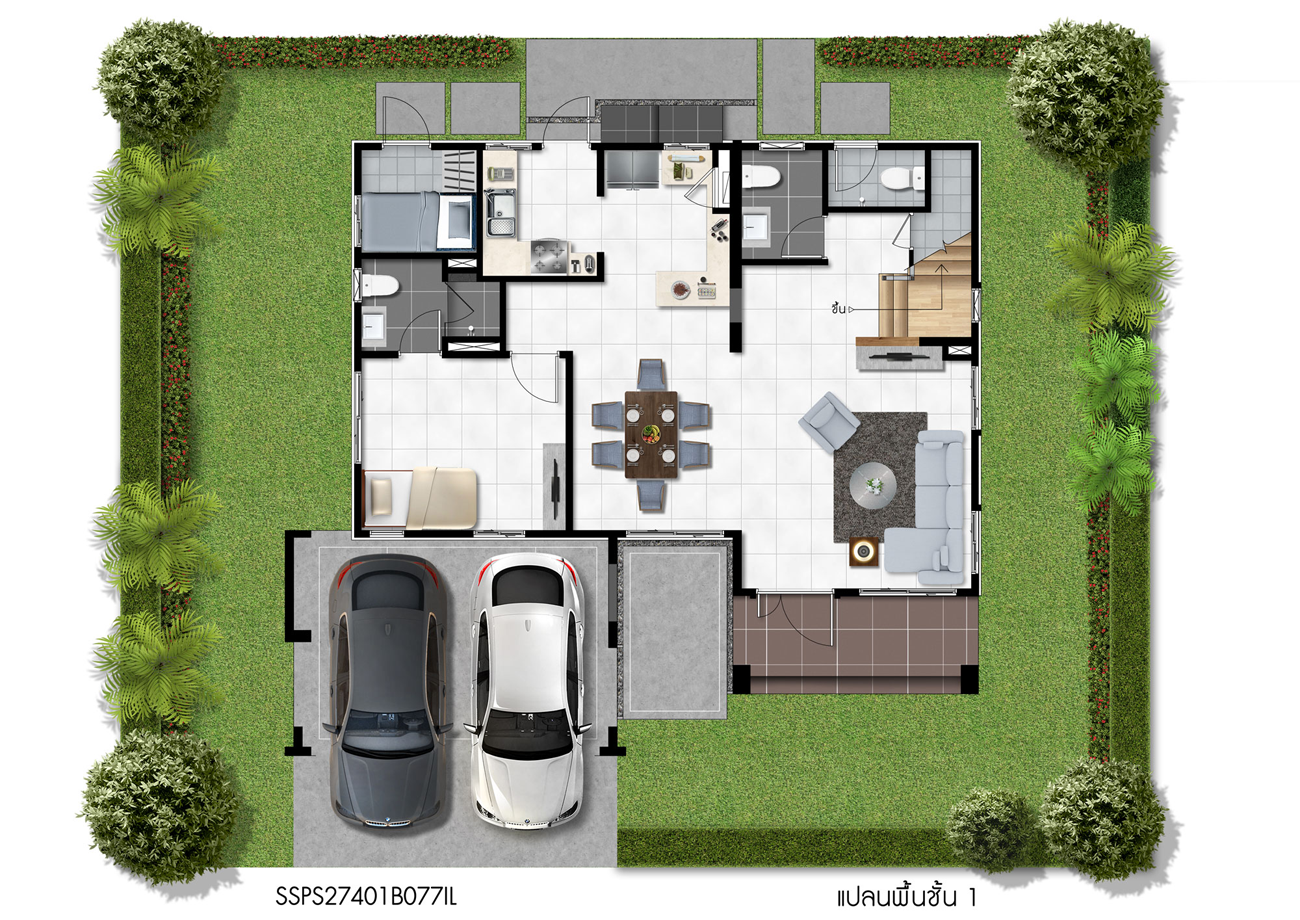 - ฟังก์ชั่นพร้อมรองรับอนาคต มีห้องนอนมากถึง 5 ห้องนอน พร้อมห้องน้ำในตัวทุกห้องนอน และ Double Volume Living ห้องรับแขกเพดานสูง 2 ชั้น โปร่งโล่ง รองรับช่วงเวลาพักผ่อน