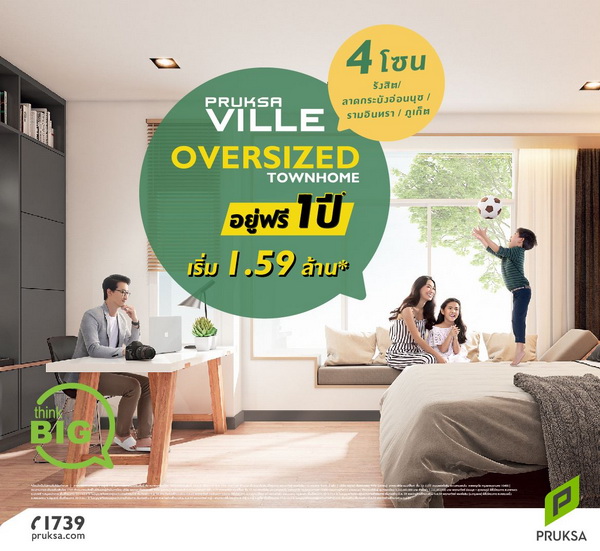 โปรโมชั่น: Pruksa Ville Oversizes Townhome อยุ่ฟรี 1 ปี* 4 โซน รังสิต / ลาดกระบังอ่อนนุช / รามอินทรา / ภูเก็ต เริ่ม 1.59 ล้านบาท*