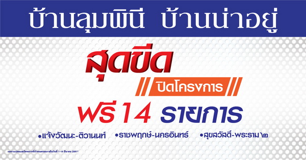www.pruksa.com โปรโมชั่น: บ้านลุมพินี บ้านน่าอยู่ คุ้มสุดๆ คุ้มกว่านี้ไม่มีอีกแล้ว กับโปรฯ ปิดโครงการ ฟรี 14 รายการ สำหรับ บ้านลุมพินี ทาวน์วิลล์ 3 โครงการ 3 ทำเล แจ้งวัฒนะ - ติวานนท์, ราชพฤกษ์ - นครอินทร์, สุขสวัสดิ์ - พระราม ๒