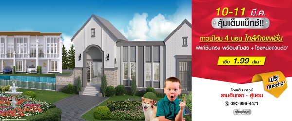 โกลเด้น ทาวน์ รามอินทรา-คู้บอน" 10-11 มี.ค. คุ้มเต็มแม็กซ์!! ฟรี...ทุกอย่าง*! ทาวน์โฮม พร้อมอยู่ 4 ห้องนอน 3 ห้องน้ำ สไตล์อังกฤษ อลังการสโมสร+โรงหนังส่วนตัว เดินทางสะดวก ใกล้รถไฟฟ้า+ห้างแฟชั่น และทางด่วน เริ่ม 1.99 ล้าน*