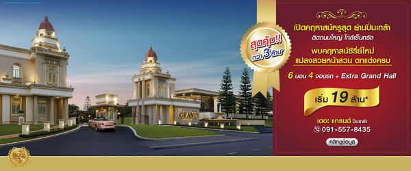 เดอะ แกรนด์ ปิ่นเกล้า" มาแรง! แซงทางโค้ง เปิดคฤหาสน์สุดหรูย่านปิ่นเกล้า ติดถนนใหญ่ ใกล้เซ็นทรัล พบคฤหาสน์ซีรี่ย์ใหม่ แปลงสวยหน้าสวน ตกแต่งครบ มาพร้อมฟังก์ชัน 6 ห้องนอน 4 ที่จอดรถ+Extra Grand Hall พิเศษ... สุดคุ้มกว่า 3 ล้าน* เริ่ม 19 ล้าน*