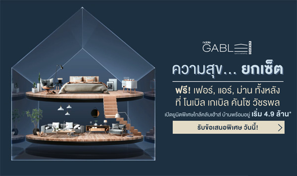 โนเบิล เกเบิล คันโซ วัชรพล" ความสุข...ยกเซ็ต ฟรี! เฟอร์, แอร์, ม่านทั้งหลัง เปิดยูนิตพิเศษใกล้คลับเฮ้าส์ บ้านพร้อมอยู่ เริ่ม 4.9 ล้าน* รับข้อเสนอพิเศษวันนี้