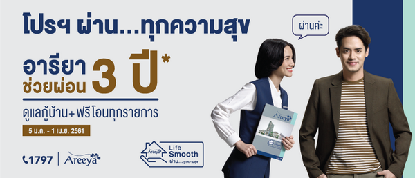 https://sansiri.com/thai/ โปรโมชั่น: โปรฯ ผ่าน...ทุกความสุข อารียาช่วยผ่อน 3 ปี ดูแลกู้บ้าน + ฟรีโอนทุกรายการ 5 ม.ค. - 1 เม.ย. 2561 นี้