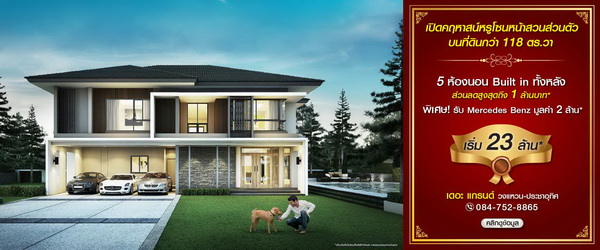 เดอะ แกรนด์ วงแหวน - ประชาอุทิศ เปิดคฤหาสน์หรูโซนหน้าสวนส่วนตัวบนที่ดินกว่า 118 ตร.ว. 5 ห้องนอน Built in ทั้งหลัง ส่วนลดสูงสุดถึง 1 ล้านบาท* พิเศษ! รับ Mercedes Benz มูลค่า 2 ล้าน* เริ่ม 23 ล้าน