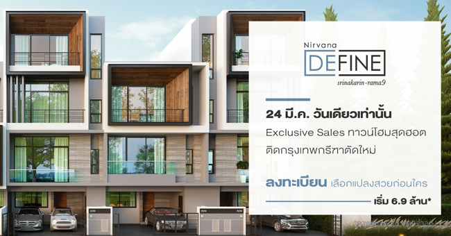 Nirvana Define ศรีนครินทร์ - พระราม 9 Exclusive Sales ทาวน์โฮมสุดฮอต 24 มี.ค. 61 วันเดียวเท่านั้น เริ่ม 6.9 ล้านบาท