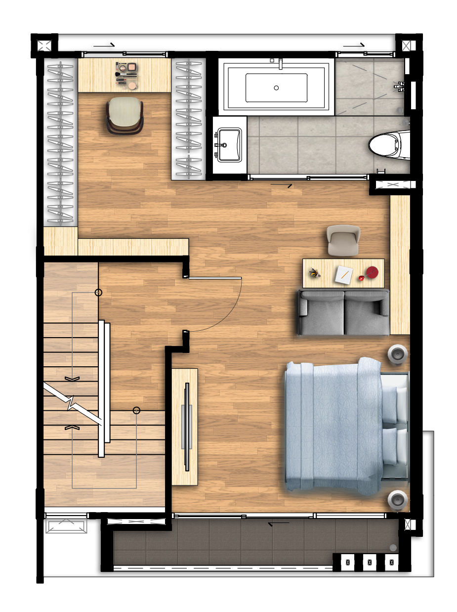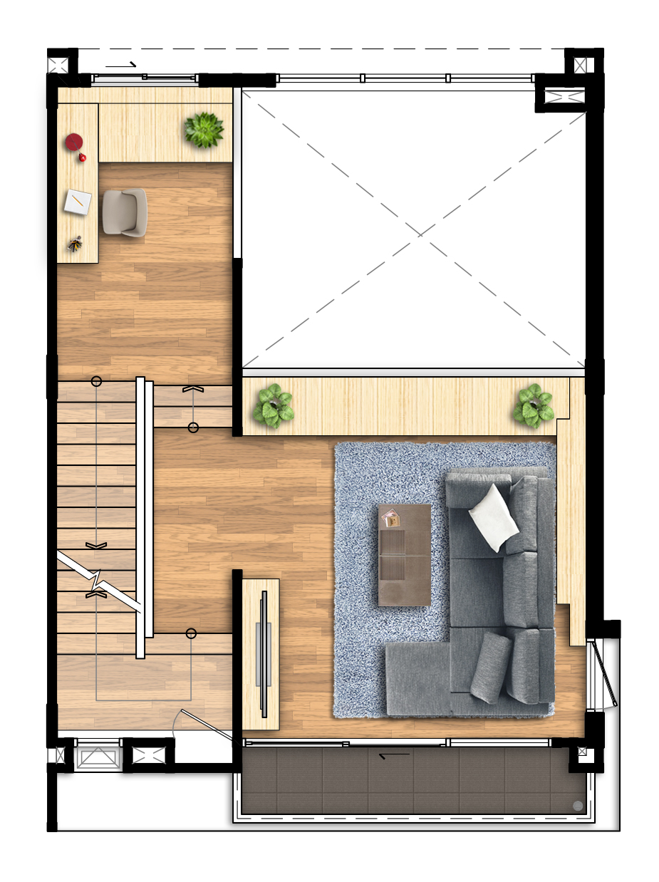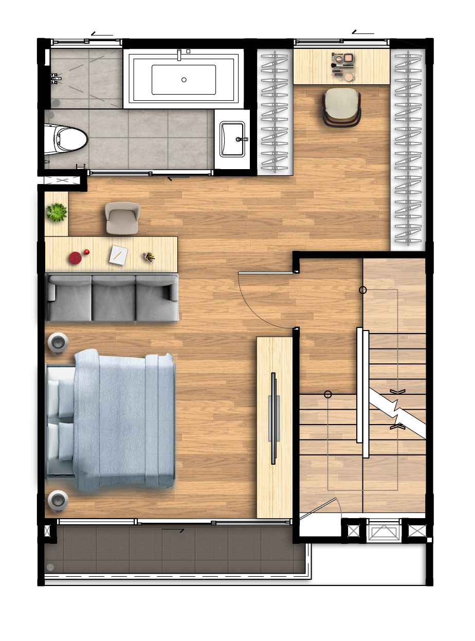 ชั้น 3 3. Type C - ทาวน์โฮม สูง 4 ชั้น เนื้อที่ขนาด 21.1 - 43.7 ตารางวา พื้นที่ใช้สอย 237 ตารางเมตร 3 ห้องนอน 3 ห้องน้ำ 1 ห้องรับแขก ที่จอดรถ 2 คัน