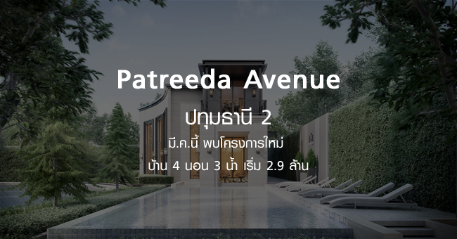 บ้านเดี่ยวโครงการใหม่ "ภัทรีดาอเวนิว ปทุมธานี 2" บ้าน 4 นอน 3 น้ำ เริ่ม 2.9 ล้านบาท