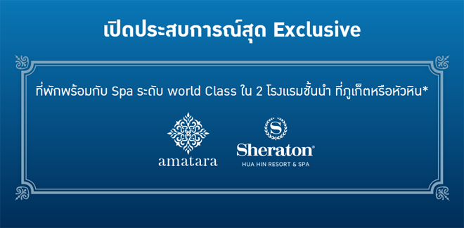 ที่พักพร้อมกับ Spa ระดับ world Class ใน 2 โรงแรมชั้นนำ ที่ Amatara ภูเก็ต หรือ Sheraton หัวหิน*
