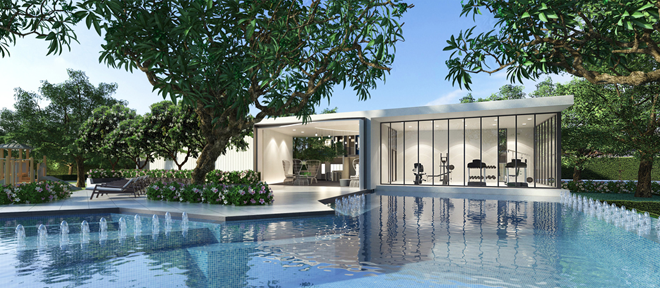 - Pool terrace พื้นที่นั่งใต้น้ำสำหรับพักผ่อนชิลๆ เชื่อมต่อสวน และต้นไม้ Form พิเศษ เปลี่ยนทุกวันของคุณให้ไม่จำเจอีกต่อไป