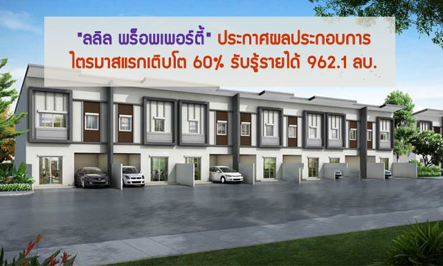 "ลลิล พร็อพเพอร์ตี้" ประกาศผลประกอบการไตรมาสแรกเติบโต 60% รับรู้รายได้ 962.1 ลบ.