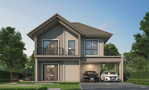 2. แบบบ้าน Hinxton - พื้นที่ใช้สอย 190 ตร.ม. ขนาดที่ดิน 57.2 ตร.ว. 4 ห้องนอน 3 ห้องน้ำ 1 ครัวไทย 2 ที่จอดรถ