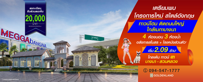 โกลเด้นแลนด์ เปิดให้จองโครงการใหม่ โกลเด้น ทาวน์ ๓ บางนา-สวนหลวง (Golden Town ๓ Bangna - Suanluang) เตรียมพบ ทาวน์โฮม โครงการใหม่ ติดถนนใหญ่ ใกล้เมกาบางนา เดินทางสะดวกสบาย กับทาวน์โฮมสไตล์อังกฤษ ที่ให้มากถึง 4 ห้องนอน 3 ห้องน้ำ พร้อมสโมสรและโรงหนังส่วนตัว ท่านที่สนใจสามารถลงทะเบียนจอง เพื่อรับส่วนลดพิ่ม 20,000 บาท* ได้ที่เว็บไซต์ของโกลเด้นแลนด์ราคาเริ่มเพียง 2.09 ล้าน*ผู้ที่สนใจ สามารถลงทะเบียนเพื่อรับสิทธิพิเศษส่วนลดเพิ่ม 20,000 บาท ได้ที่ลิงก์ข้างล่างนี้สอบถามข้อมูลเพิ่มเติม โทร 094-547-1777 เว็บไซต์ www.goldenland.co.th และ Fanpage : https://www.facebook.com/GOLDENLANDแท็กที่เกี่ยวข้อง :