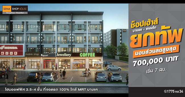 "เสนา ช็อปเฮ้าส์ บางแค - เทอดไท" โฮมออฟฟิศ 3.5 - 4 ชั้น ที่จอดรถ 100% ใกล้ MRT บางแค เริ่ม 7 ล้านบาท ลงทะเบียนรับสิทธิพิเศษที่นี่