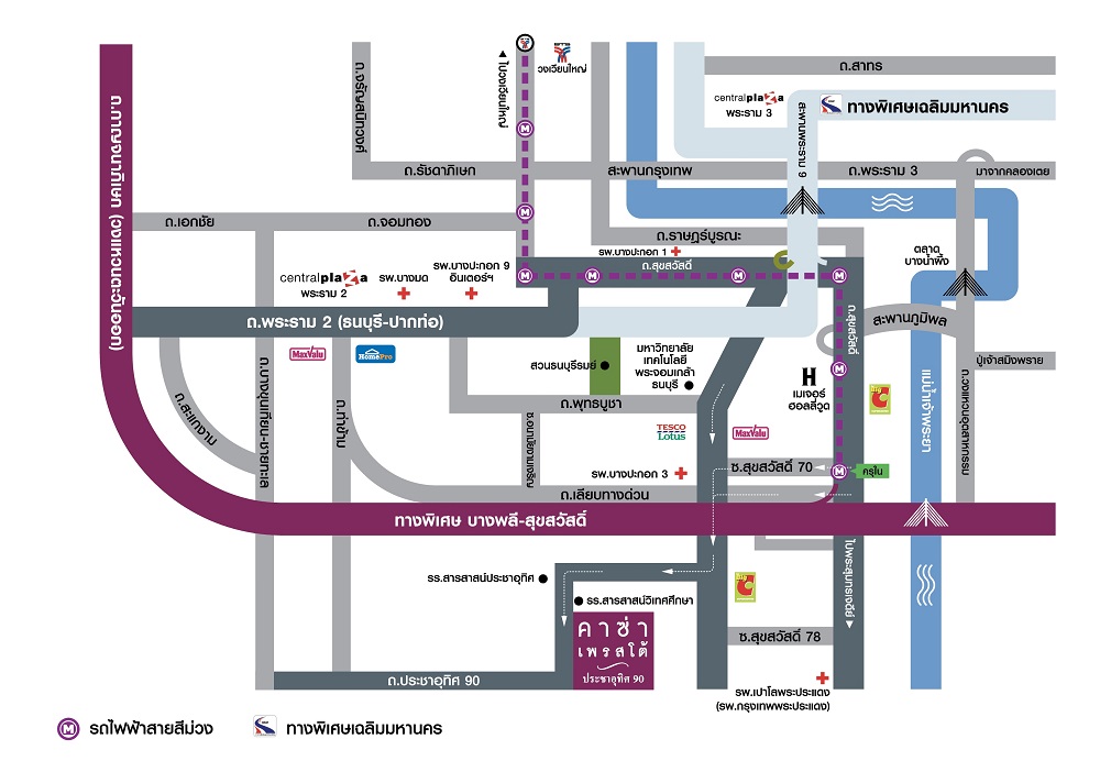 - ใกล้จุดขึ้น-ลงทางด่วนกาญจนาภิเษก (วงแหวนรอบนอก) และใกล้สถานีรถไฟฟ้าสายสีม่วง (ครุใน) (ในอนาคต)