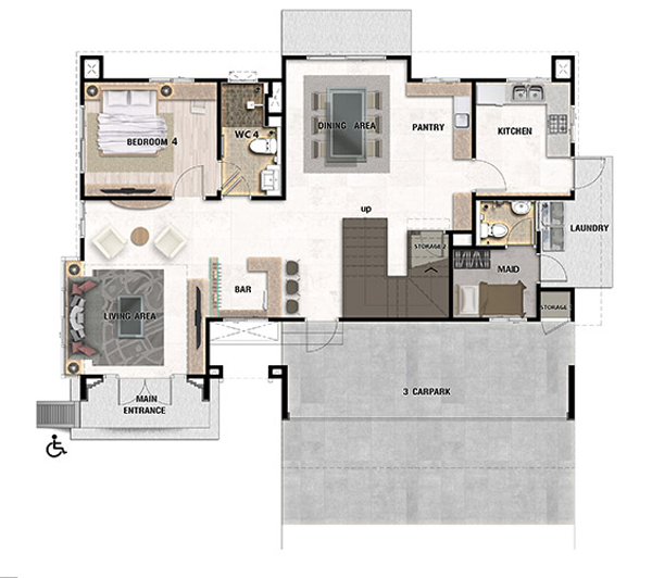 1. Lorena - บ้านเดี่ยว 2 ชั้น โอ่โถง ภูมิฐานด้วย Dubble Volune ห้องน้ำออกแบบพิเศษ สำหรับผู้สูงอายุ พื้นที่ใช้สอย 230 ตร.ม. 4 ห้องนอน 4 ห้องน้ำ 1 ห้องรับแขก 1 ห้องพักผ่อน 1 ห้องแม่บ้าน 3 ที่จอดรถ
