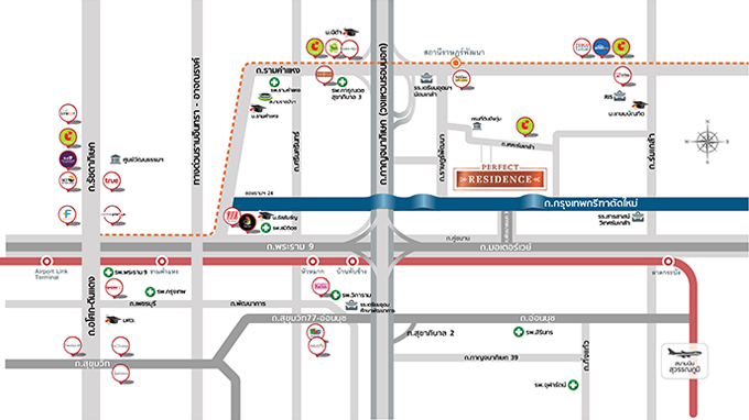 แผนที่โครงการเพอร์เฟค เรสซิเดนซ์ พระราม 9-กรุงเทพกรีฑา