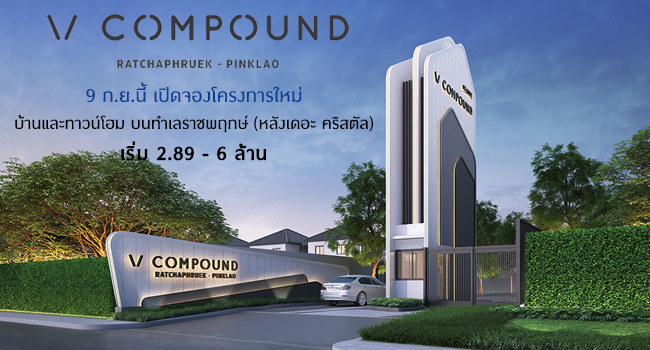 2 ส.ค. 61 2,831"V Compound ราชพฤกษ์ - ปิ่นเกล้า" 9 ก.ย. นี้ เปิดจองโครงการใหม่ เริ่ม 2.89 - 6 ล้านบาท