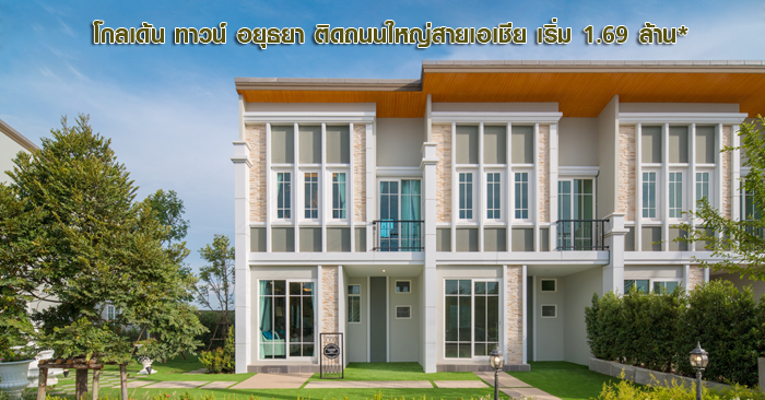โกลเด้น ทาวน์ อยุธยา (Golden Town Ayutthaya) ... ทาวน์โฮมสไตล์อังกฤษ ติดถนนใหญ่สายเอเชีย