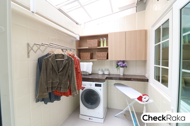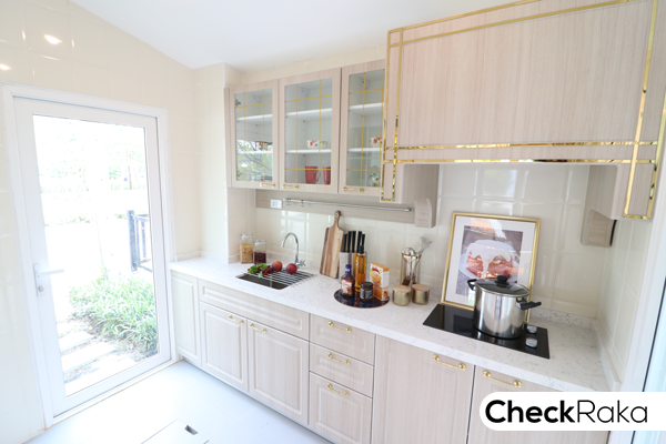 GOLDEN Kitchen นวัตกรรมครัวไทย โดยเตรียมโครงสร้างพื้นที่หลังบ้านเป็นกำแพงสูง พร้อมรางน้ำให้เรียบร้อย ซึ่งเจ้าของบ้านทำเป็นพื้นที่ห้องครัว ห้องซักรีด หรือเป็นมุมสวนได้ทันที