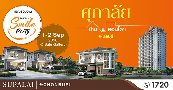 โปรโมชั่น: เชิญร่วมงาน "Supalai Smile Party" 4 โครงการ โซนชลบุรี 1 - 2 กันยายน 2561 นี้