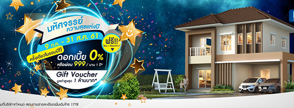 โปรโมชั่น: มหัศจรรย์ความสุขแห่งปี 9 กรกฎาคม 2561 - 31 สิงหาคม 2561 ครั้งเดียวในรอบปี ดอกเบี้ย 0% หรือผ่อน 999/นาน 1 ปี Gift Voucher มูลค่าสูงสุด 1 ล้านบาท*