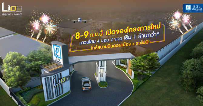 ไลโอ บลิสซ์ ลำลูกกา - คลอง 2 ทาวน์โฮม 4 ห้องนอน เปิดให้จอง 8-9 ก.ย. นี้ เริ่ม 1 ล้านกว่า*