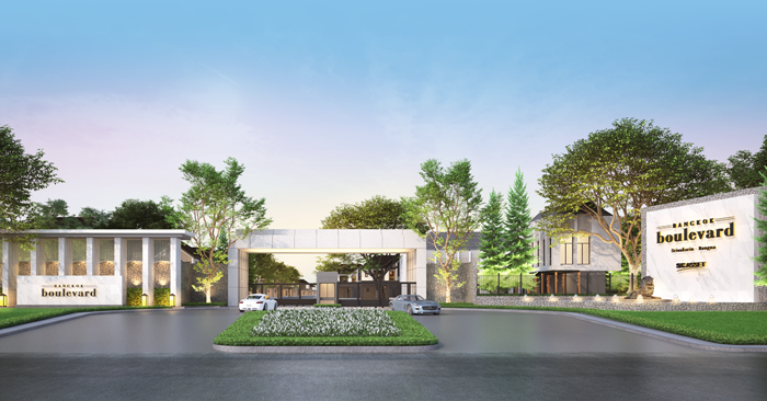 บางกอก บูเลอวาร์ด ศรีนครินทร์ - บางนา (Bangkok Boulevard Srinakarin - Bangna) บ้านเดี่ยว สไตล์ยุโรป ผสมผสานการออกแบบสวน สไตล์สวิส ท่ามกลางธรรมชาติแบบ Lake Luzern ให้คุณมีความรู้สึกได้ท่องเที่ยวใกล้ชิดกับธรรมชาติได้ในทุกๆ วัน บนพื้นที่สวนส่วนกลางขนาด 1 ไร่ มีแบบบ้านให้เลือก 4 แบบ บนพื้นที่ใช้สอยตั้งแต่ 200 -318 ตร.ม. ขนาดที่ดิน 50.6 ตร.ว. ขึ้นไป จำนวนบ้านทั้งหมด 154 ยูนิต บนเนื้อที่โครงการกว่า 50-0-70.8 ไร่ พร้อมคลับเฮ้าส์ สระว่ายน้ำ ฟิตเนส สวนส่วนกลาง และระบบรักษาความปลอดภัย แบบ Triple Security ตลอด 24 ชั่วโมง พร้อมกล้อง CCTV ทั่วทั้งโครงการ