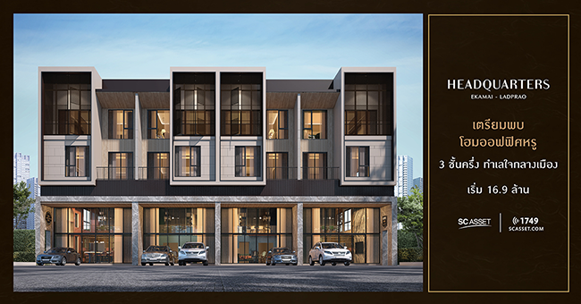 บริษัท เอสซี แอสเสท คอร์ปอเรชั่น จำกัด (มหาชน) เปิดตัวโฮมออฟฟิศซีรีย์ใหม่ "เฮดควอเทอร์ส เอกมัย - ลาดพร้าว (Headquarters Ekamai - Ladprao)" โฮมออฟฟิศหรู 3 ชั้นครึ่ง ออกแบบในสไตล์โมเดิร์นคลาสสิค สังคมคุณภาพเอกสิทธิ์ 10 ยูนิต เหนือระดับทั้งงาน และการพักผ่อน บนทำเลศักยภาพ เอกมัย - ลาดพร้าว เปิดให้ลงทะเบียนรับสิทธิพิเศษที่ลิงก์ด้านล่างราคาเริ่มต้น 16.9 ล้านบาท"เฮดควอเทอร์ส เอกมัย - ลาดพร้าว (Headquarters Ekamai - Ladprao)" ตั้งอยู่ติดถนนใหญ่อินทราภรณ์ ในย่านทำเลธุรกิจทาวน์อินทาวน์ เข้าออกได้หลายทาง รายล้อมด้วยศูนย์กลางความเจริญทุกด้าน ใกล้สิ่งอำนวยความสะดวก Community Mall โรงแรม ร้านอาหารชั้นนำ เดินทางสะดวก เชื่อมต่อสู่ถนนประดิษฐ์มนูธรรม เอกมัย - ทองหล่อ ถนนลาดพร้าว ถนนพระราม 9 ถนนรัชดาภิเษก และถนนรามคำแหง รองรับการคมนาคมในอนาคตด้วยรถไฟฟ้า 4 สาย HEADQUARTERS เอกมัย - ลาดพร้าว โครงการโฮมออฟฟิศหรูหนึ่งเดี่ยวจาก SC ASSETโครงการโฮมออฟฟิศ ลงตัวทั้งการทำงานและพักผ่อน WORK x LIVING เปิดตัวแบบบ้านใหม่ ได้แก่ แบบ Diretor - S และ Director โฮมออฟฟิศ 3 ชั้นครึ่ง มีรายละเอียดดังนี้1. แบบบ้าน Diretor - S เนื้อที่บ้าน 40.4 ตร.ว. พื้นที่ใช้สอย 306 ตร.ม. หน้ากว้าง 6.9 เมตร รองรับพนักงานได้ 25 - 30 คน จอดรถได้ 2 คัน
