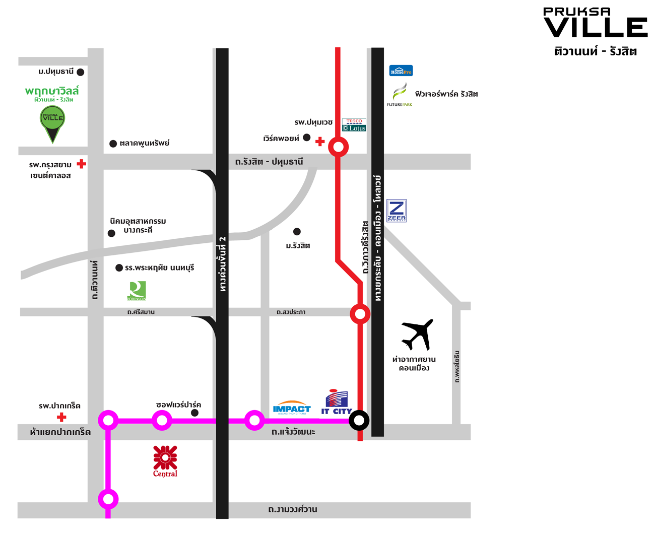 แผนที่โครงการพฤกษาวิลล์ ติวานนท์ - รังสิต