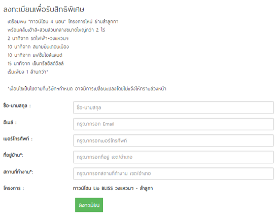 - 15 นาทีจาก เซ็นทรัลอีสต์วิลล์ราคาเริ่มที่ 1 ล้านกว่า*ท่านที่สนใจสามารถลงทะเบียนเพื่อรับสิทธิพิเศษ ได้ที่ลิงก์ด้านล่างนี้*เงื่อนไขเป็นไปตามที่บริษัทฯ กำหนดสอบถามรายละเอียดเพิ่มเติม โทร 1778 เว็บไซต์ http://www.lalinproperty.comข่าว-โปรโมชั่นล่าสุดอื่นๆ