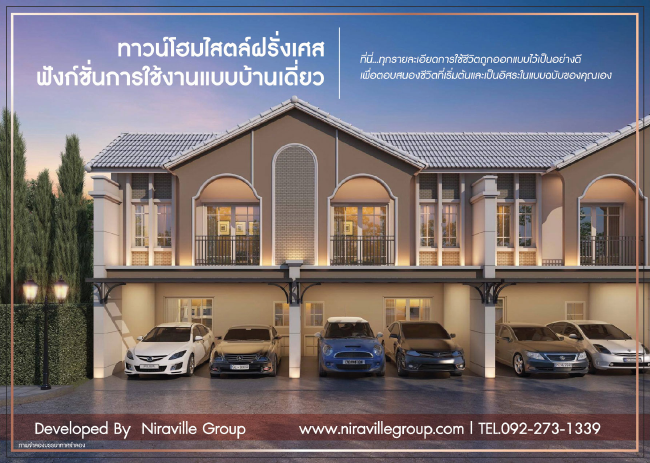 บริษัท นิราวิลล์ พร็อพเพอร์ตี้ จำกัด เปิดตัวบ้านโครงการใหม่ "นิราวิลล์ ไอริช (Niraville Irish)" ทาวน์โฮมโครงการใหม่ สไตล์ฝรั่งเศส ฟังก์ชันบ้านเดี่ยว ย่านเศรษฐกิจ! ที่สุดแห่งทำเลศักยภาพ เพียง 15 นาที ถึง เซ็นทรัลพลาซา มหาชัย ลงทะเบียนจองสิทธิ์รับเพิ่ม 10,000 บาท* ได้ที่ลิงก์ด้านล่างราคาเริ่มต้น 1.99 ล้านบาทนิราวิลล์ ไอริช (Niraville Irish) ทาวน์โฮม ดีไซน์ใหม่ สไตล์ฝรั่งเศส 3 ห้องนอน 3 ห้องน้ำ อลังการสโมสร พร้อมสระว่ายน้ำ ทุกรายละเอียดการใช้ชีวิตออกแบบไว้เป็นอย่างดี เพื่อตอบสนองชีวิตที่เริ่มต้นและเป็นอิสระในแบบฉบับของคุณเอง