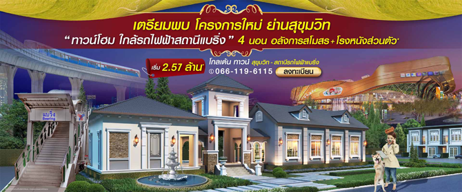 โกลเด้นแลนด์ เปิดให้จองโครงการใหม่ โกลเด้น ทาวน์ สุขุมวิท-สถานีรถไฟฟ้าแบริ่ง (Golden Town Sukhumvit-Bearing Station) เตรียมพบ ทาวน์โฮม โครงการใหม่ ย่านสุขุมวิท!! สุดยอดทาวน์โฮม เดินทางสะดวกสบาย ใกล้รถไฟฟ้าแบริ่ง พบกับทาวน์โฮม 4 ห้องนอน สไตล์อังกฤษ อลังการสโมสร + โรงหนังส่วนตัว ท่านที่สนใจสามารถลงทะเบียนจอง เพื่อรับสิทธิพิเศษเพิ่ม 20,000 บาท* ได้ที่เว็บไซต์ของโกลเด้นแลนด์ราคาเริ่ม 2.57 ล้านต้น*ผู้ที่สนใจ สามารถลงทะเบียนเตรียมจองรับสิทธิพิเศษเพิ่ม 20,000 บาท ได้ที่ลิงก์ข้างล่างนี้สอบถามข้อมูลเพิ่มเติม โทร. 066-119-6115 เว็บไซต์ www.goldenland.co.th และ Fanpage : https://www.facebook.com/GOLDENLANDข่าว-โปรโมชั่นล่าสุดอื่นๆ