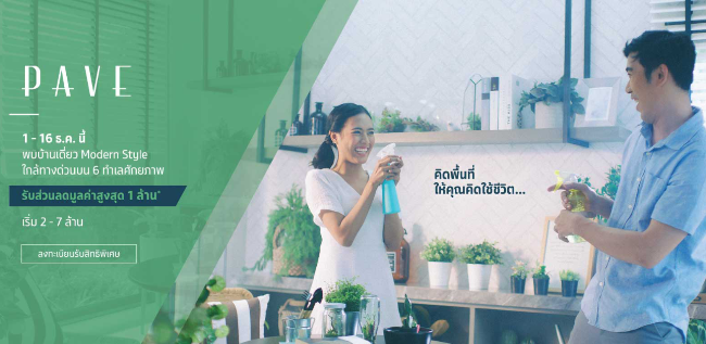 18 ธ.ค. 61 1,164แคมเปญบ้านเดี่ยวแบรนด์ "PAVE" 6 โครงการ 6 ทำเล ใกล้ทางด่วน เริ่ม 2 - 7 ล้าน* ลงทะเบียนรับสิทธิพิเศษ