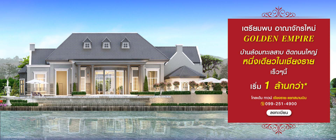 โกลเด้น ทาวน์ เชียงราย-แยกสนามบิน อาณาจักรใหม่ GOLDEN EMPIRE บ้านล้อมทะเลสาบ ติดถนนใหญ่ เริ่ม 1 ล้านกว่า*