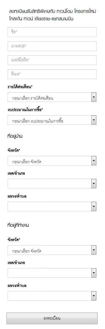 โกลเด้นแลนด์ เปิดให้จองโครงการใหม่ โกลเด้น ทาวน์ เชียงราย-บิ๊กซีแยกสนามบิน (Golden Town Chiangrai - Big C Yaek Sanambin) เตรียมพบ อาณาจักรใหม่ GOLDEN EMPIRE บ้านโครงการใหม่ บ้านล้อมทะเลสาบ สะดวก ติดถนนใหญ่ ใกล้สนามบิน หนึ่งเดียวในเชียงราย ท่านที่สนใจสามารถลงทะเบียนจอง เพื่อรับส่วนลดพิ่ม 20,000 บาท* ได้ที่เว็บไซต์ของโกลเด้นแลนด์ราคาเริ่มเพียง 1 ล้านกว่า*ผู้ที่สนใจ สามารถลงทะเบียนเพื่อรับสิทธิพิเศษส่วนลดเพิ่ม 20,000 บาท ได้ที่ลิงก์ด้านล่างนี้สอบถามข้อมูลเพิ่มเติม โทร 099-251-4900 เว็บไซต์ www.goldenland.co.th และFanpage : https://www.facebook.com/GOLDENLANDข่าว-โปรโมชั่นล่าสุดอื่นๆ