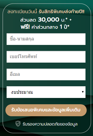 ลงทะเบียนวันนี้ รับสิทธิพิเศษส่งท้ายปี!! ส่วนลด 30,000 บาท* ฟรีค่าส่วนกลาง 1 ปี *ได้ที่ลิงก์ด้านล่างนี้