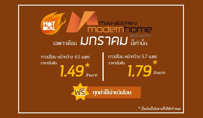 - ทาวน์โฮม หน้ากว้าง 4.5 เมตร ราคาเริ่มต้น 1.49 ล้านบาท