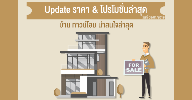Update ราคา & โปรโมชั่น บ้านทาวน์โฮม น่าสนใจล่าสุด ณ วันที่ 8 มกราคม 2562