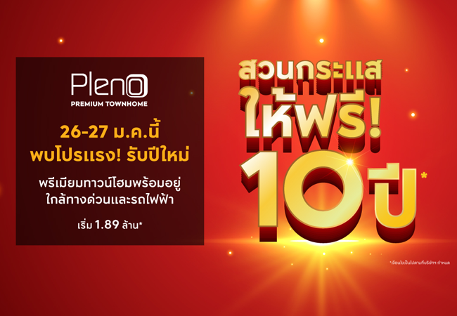Townhome 26 - 27 มกราคม 2562 นี้ รับโปรฯ แรง สวนกระแส พลีโน่ ให้ฟรี 10 ปี* พรีเมียมทาวน์โฮมพร้อมอยู่ เริ่ม 1.89 ล้านบาท* ลงทะเบียนรับสิทธิพิเศษ VIP 200 ท่านแรก* (สิทธิ์มีจำนวนจำกัด) พร้อมรับข้อมูลเพิ่มเติมก่อนวันงาน