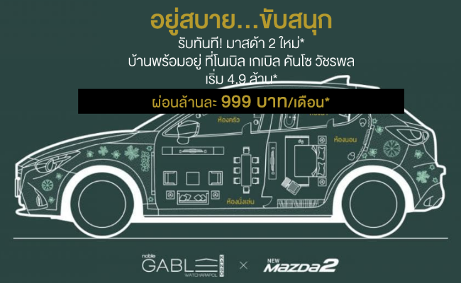 โนเบิล เกเบิล คันโซ วัชรพล บ้านพร้อมอยู่ เริ่ม 4.9 ล้านบาท* ผ่อนล้านละ 999 บาท/เดือน*