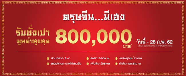 โปรโมชั่น : ตรุษจีนมีเฮง รับอั่งเปามูลค่าสูงสุด 800,000 บาท วันนี้-23 ก.พ. 62
