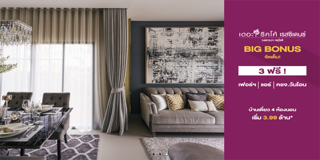 โปรโมชั่น : บ้านเดี่ยว 100 ตารางวา ติดถนนเมน ฟรี! ทุกค่าใช้จ่าย + เฟอร์นิเจอร์ จาก LIM มูลค่า 2 ล้าน*