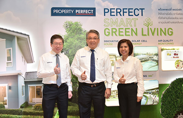 คุณชายนิด อรรถญาณสกุล ประธานเจ้าหน้าที่บริหาร, คุณวงศกรณ์ ประสิทธิ์วิภาต กรรมการผู้จัดการ และ คุณศิริรัตน์ วงศ์วัฒนา ประธานเจ้าหน้าที่กลุ่มการเงิน บริษัท พร็อพเพอร์ตี้ เพอร์เฟค จำกัด (มหาชน)